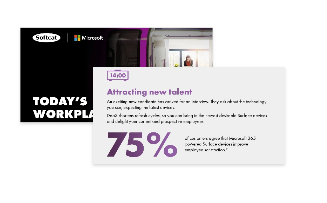 With Device as a Service (DaaS), organisations can connect their workforce with the latest Surface devices, accessories and software for one monthly payment. It’s the modern, flexible way of sourcing, supporting and managing technology – making sure your teams have what they need to work smarter, and in their own way, wherever they’re based.